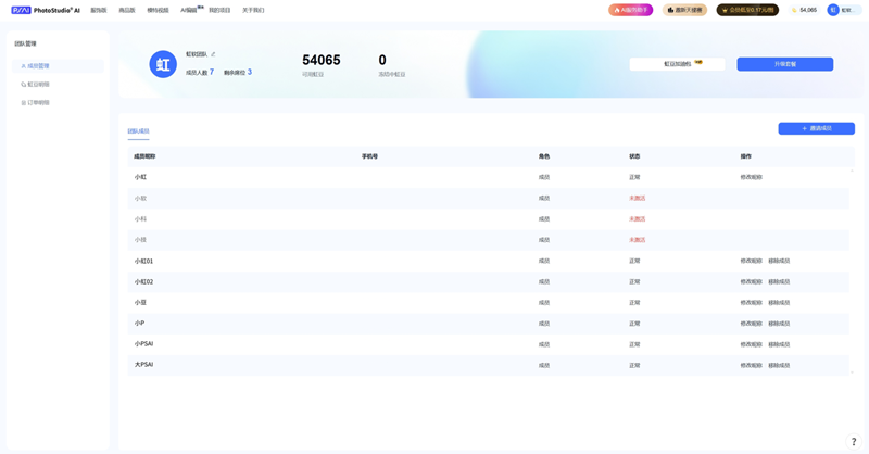 PSAI企业版成员管理页面展示